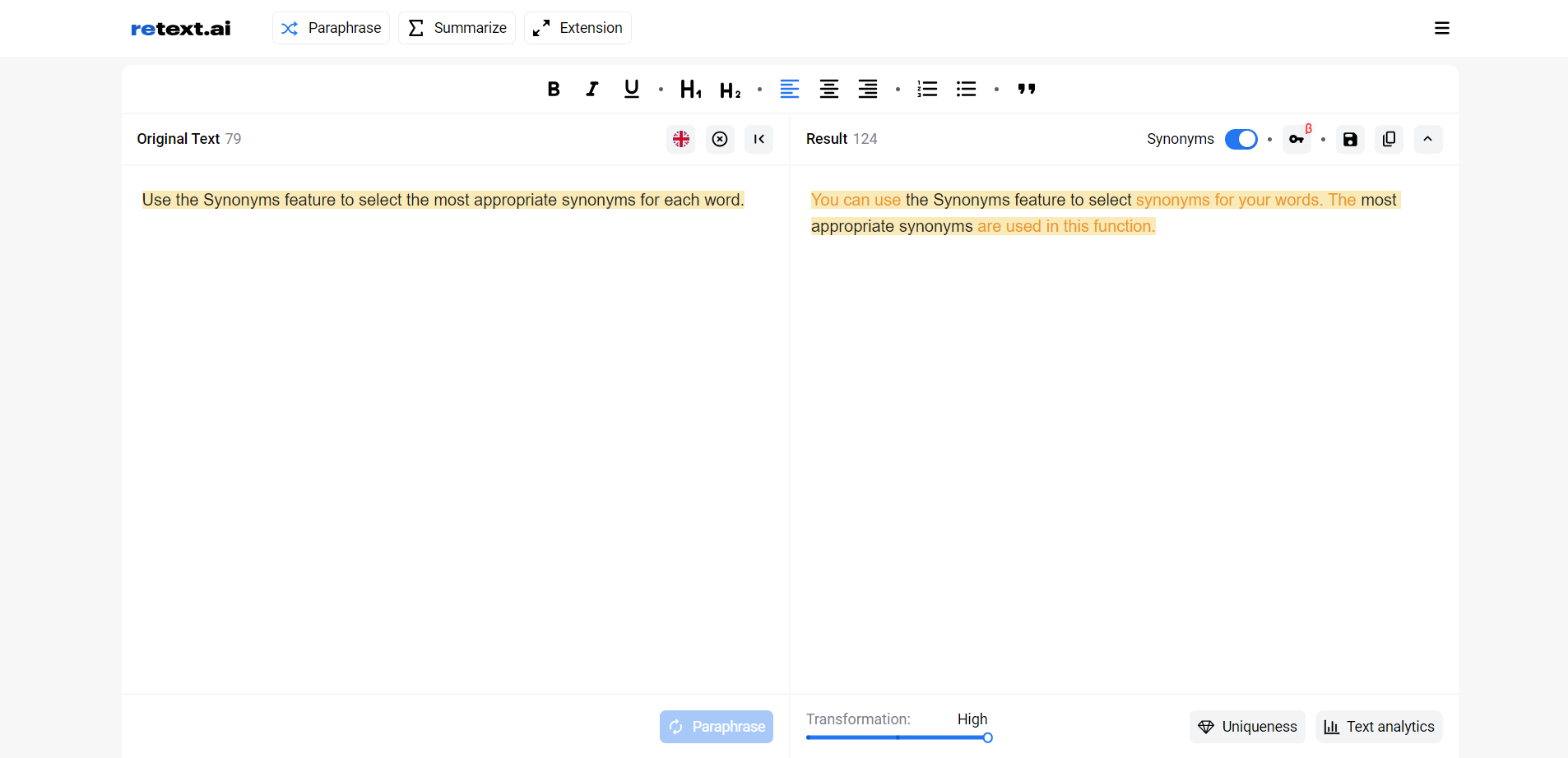 - Paraphrase the text using the artificial intelligence ReText.AI.