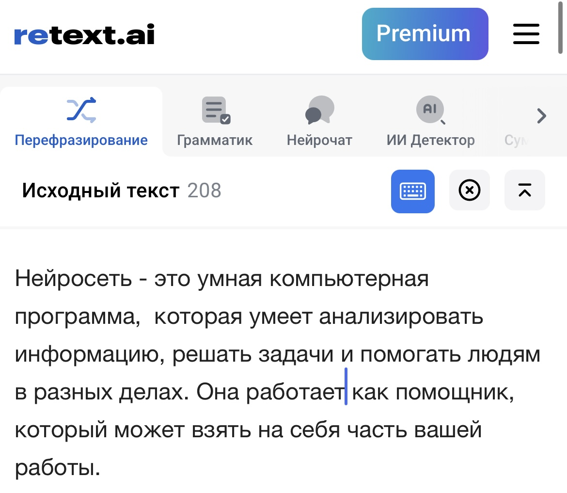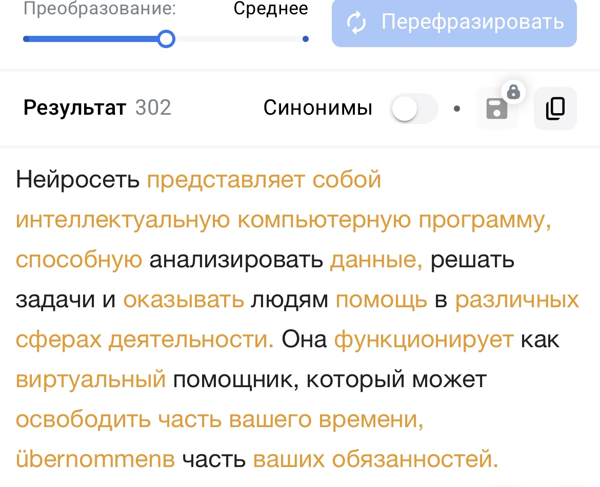 📌 What it does: paraphrases texts, increases uniqueness, works online.