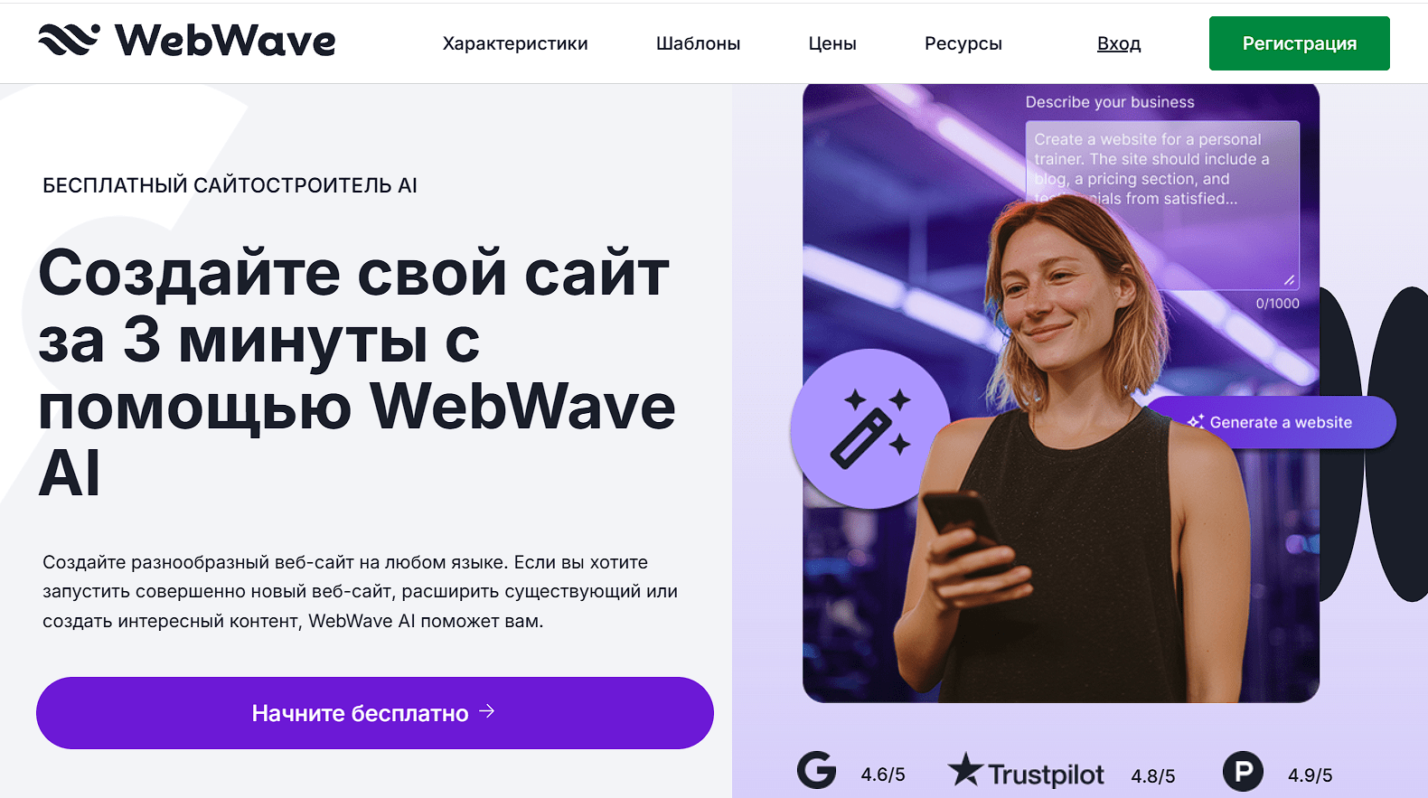 Example of use. In 2-3 minutes get a draft site: enter a niche and style - the service generates a layout, texts and images, immediately with hosting and SSL. For stores - large catalog and import of goods.
