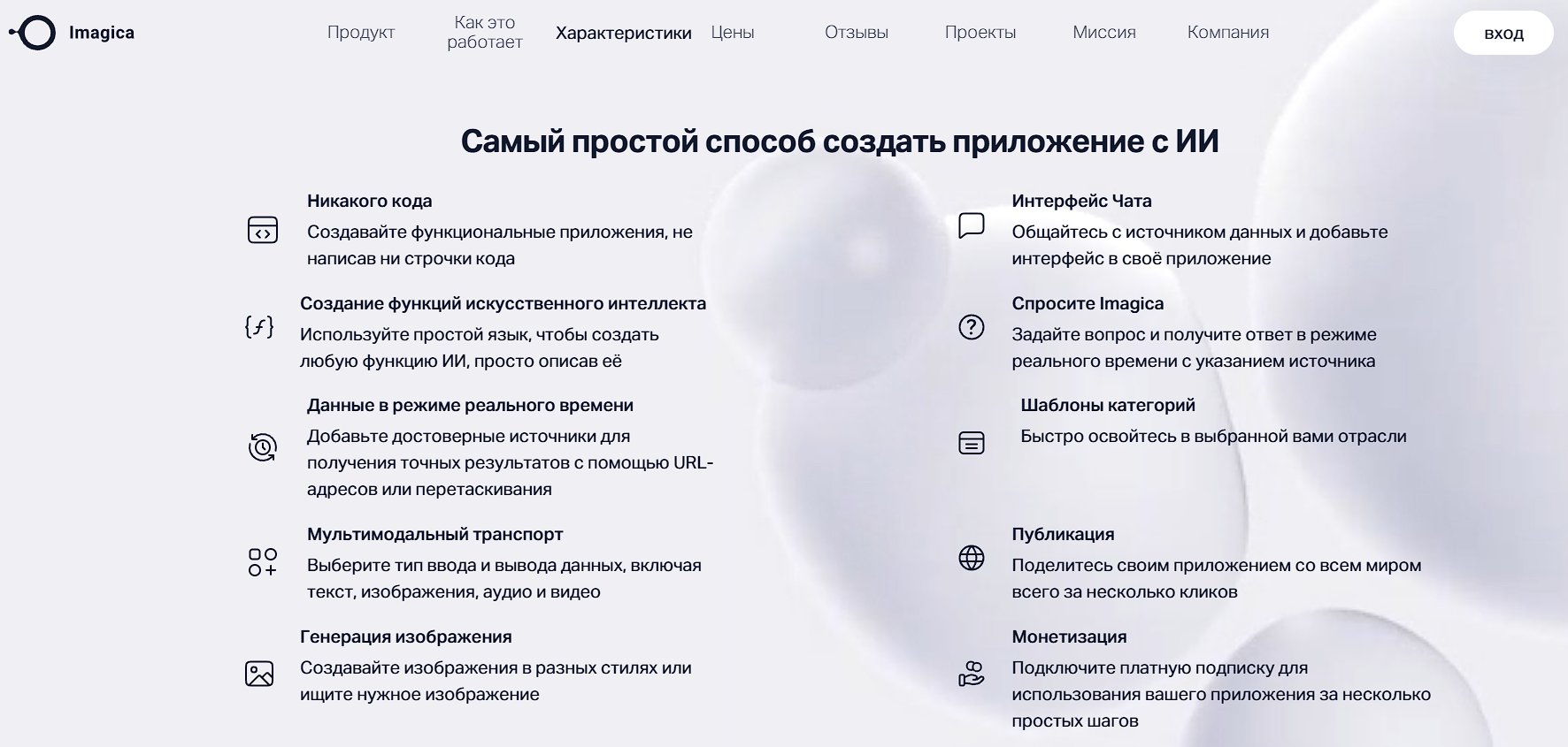 Opportunities. AI-generation of pages and content, automatic selection of visuals, adaptive, basic SEO settings, one-click publishing, e-commerce (including product upload, CSV import).