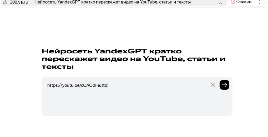 Sammarie video using YandexGPT:
