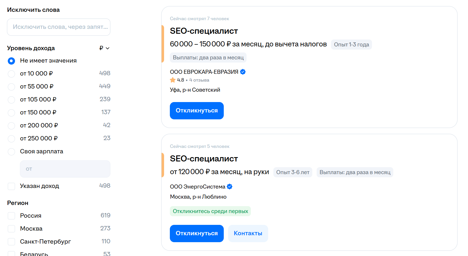 Money in SEO is made up of three variables: qualification + region + employment format. Below are the latest figures for Russia, which will help to correlate expectations with reality.