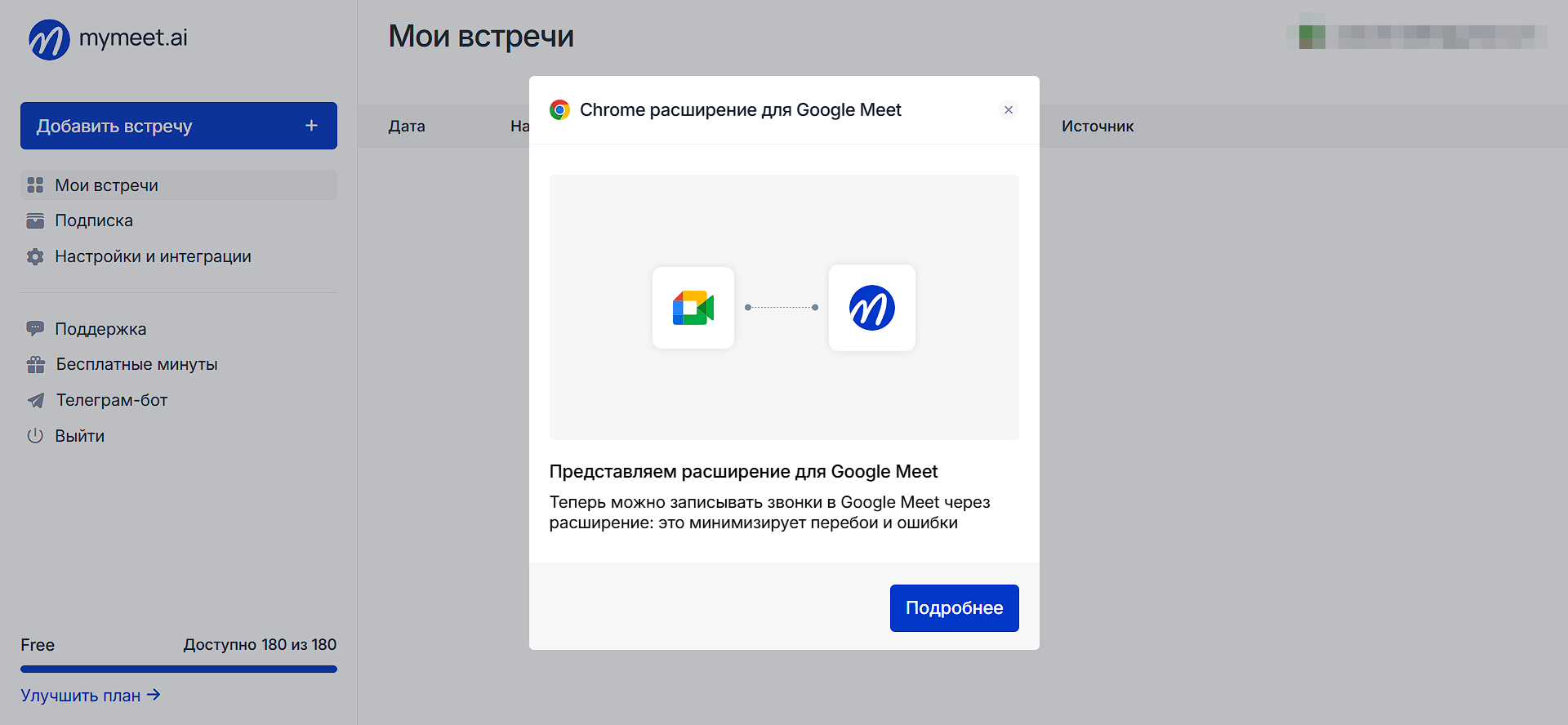 mymeet.ai is a Russian AI-assistant for fast transcribing: it turns an hour of recording into text in 5 minutes, accurately transcribes Russian speech and immediately generates reports with chat questions.
