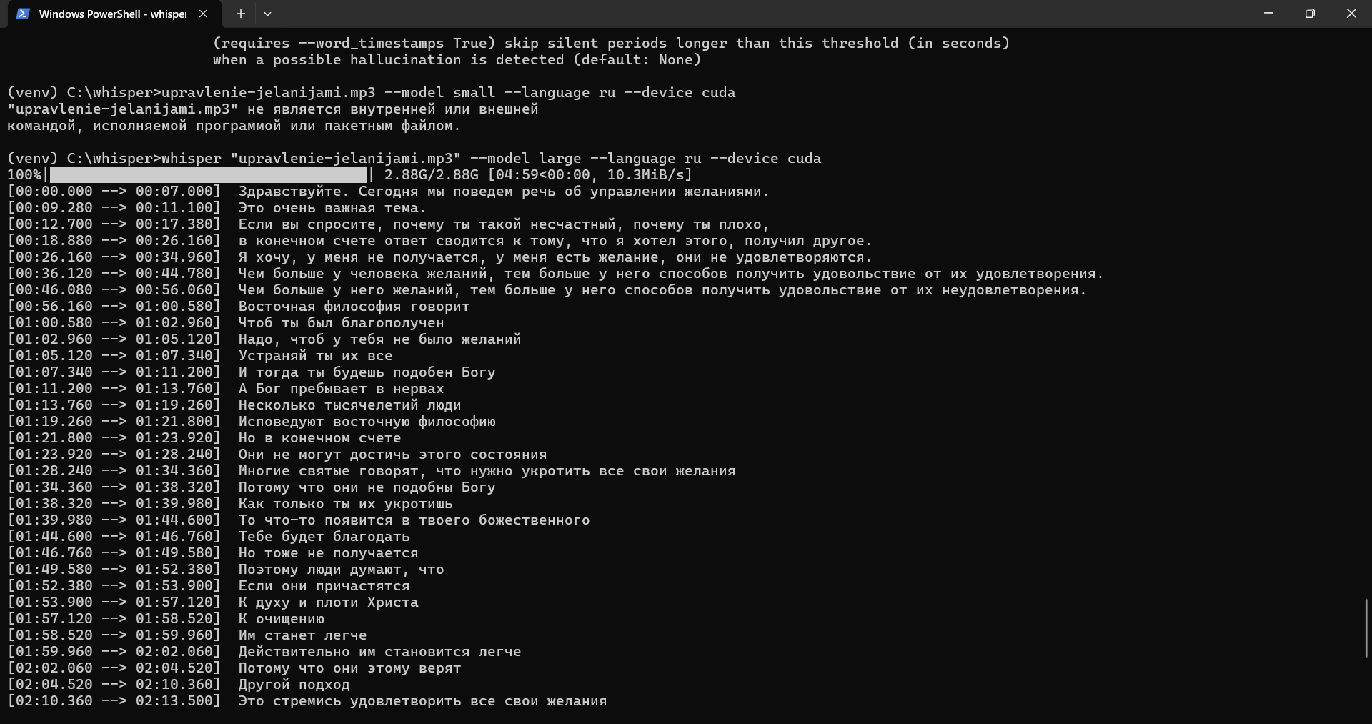 This multi-step process makes transcribing a reliable tool rather than a guess-it-or-not lottery. It is now possible to work with polyglot recordings, where Russian, English and Spanish alternate in one sentence, and get adequate results even with an average microphone quality.