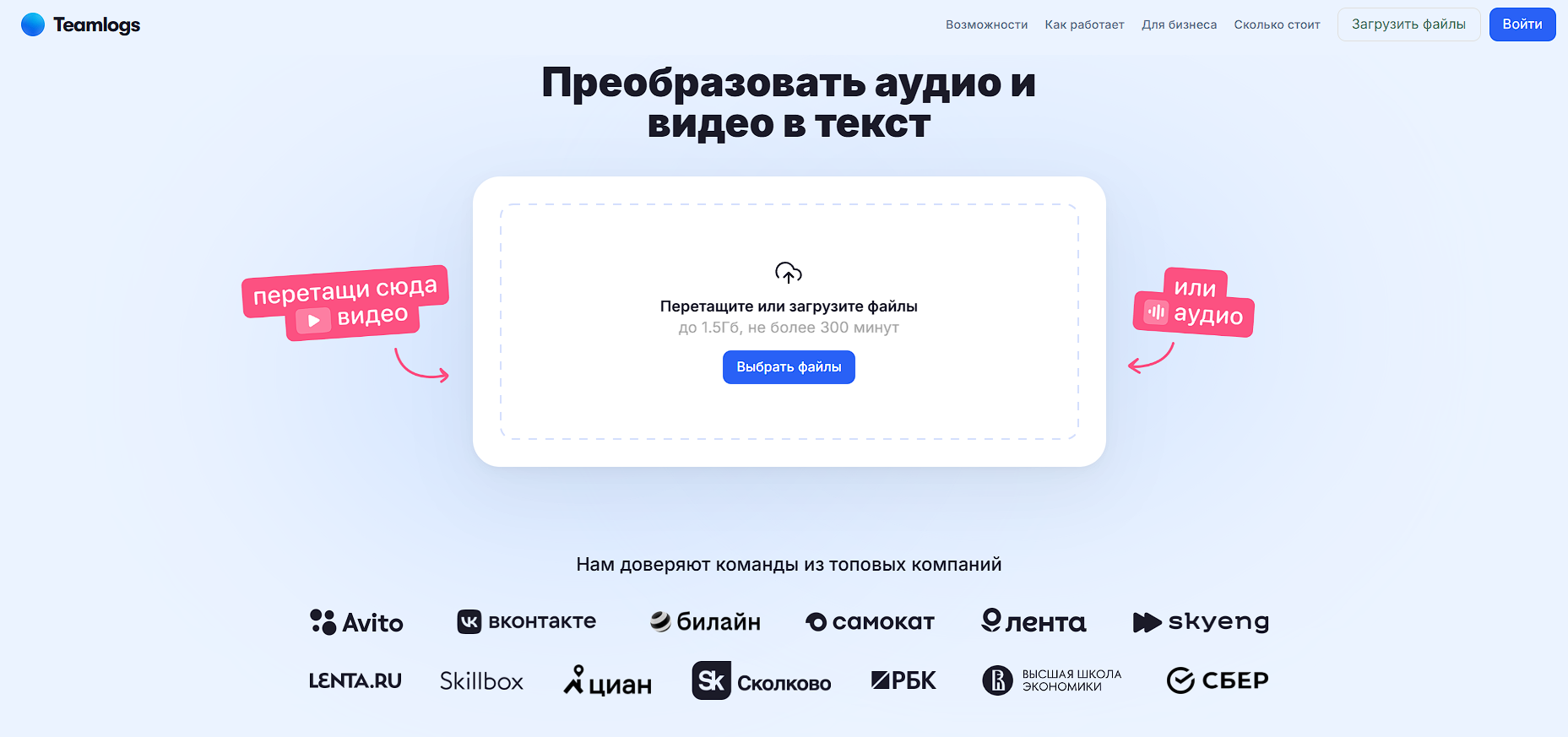 - Russian language support: full, the service is initially focused on Russian-language recordings; it also works with video.