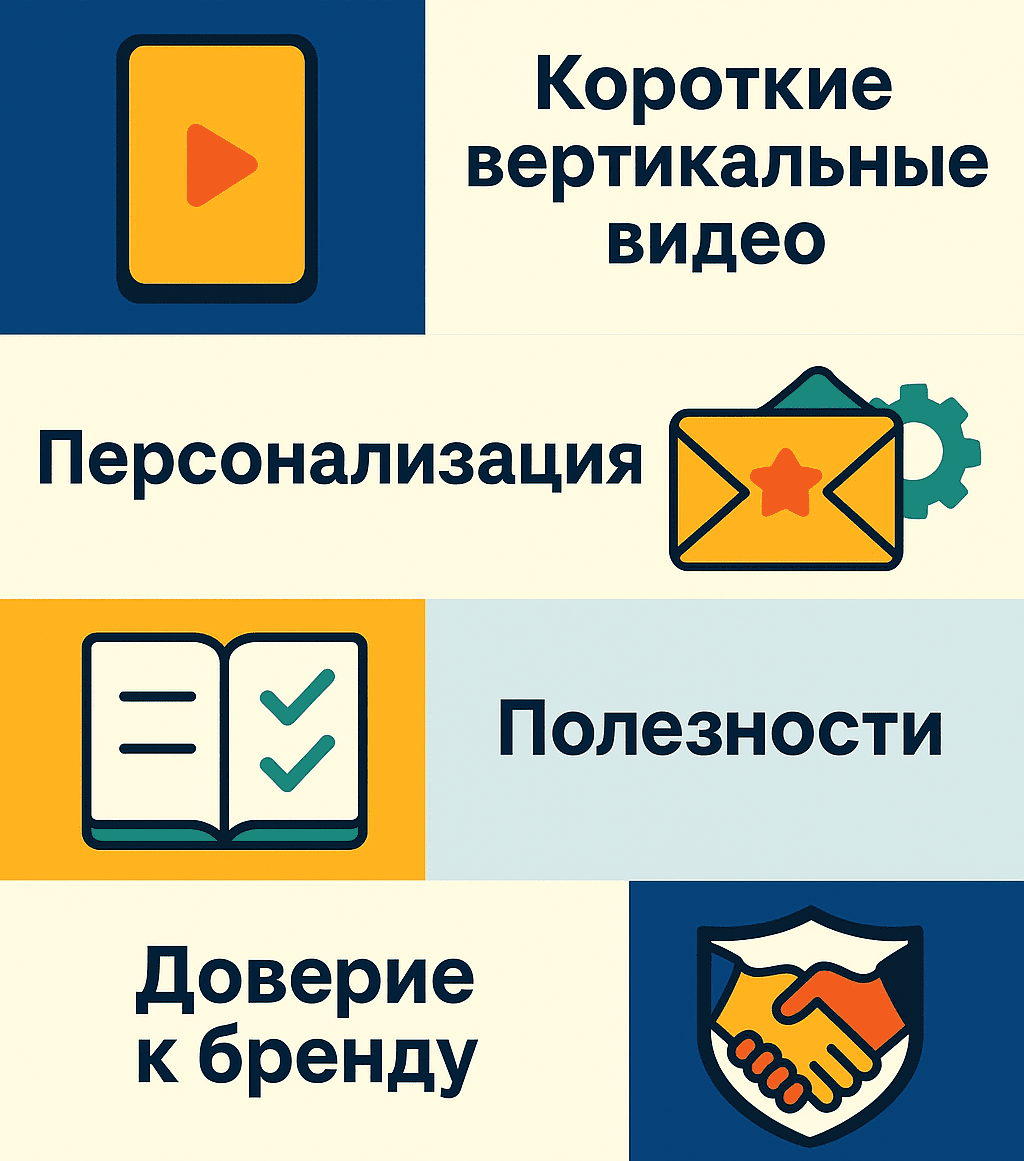 It is these four trends that form the key context for 2025. Short videos pull first contacts, personalization drives retention, educational content fuels trust, and radical openness solidifies loyalty. Together, they transform marketing strategy into a multi-level ecosystem where every action is measured and refined by AI tools in real time.