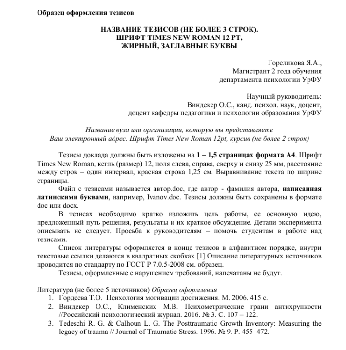 Во всех случаях тезисы должны отражать содержание доклада, но не дублировать его дословно.