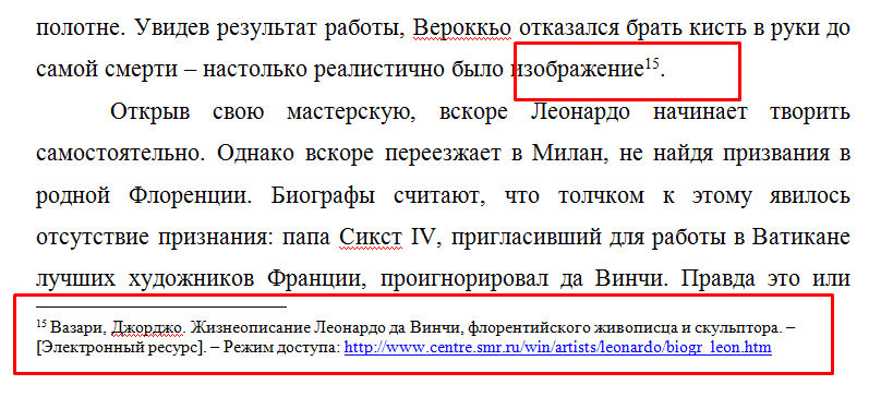 Как оформить ссылку в сноске