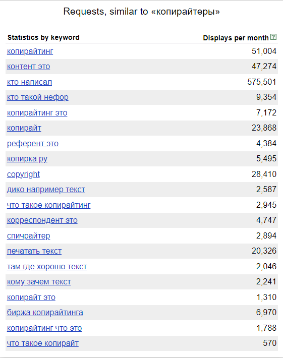«Wordstat» — сервис подбора ключевых слов. Благодаря ему можно оценить интерес пользователей к какой либо теме. Выберите главное слово статьи (тему статьи), что ищут с этим словосочетанием. Это и будут вопросы, на которые нужно ответить в тексте.