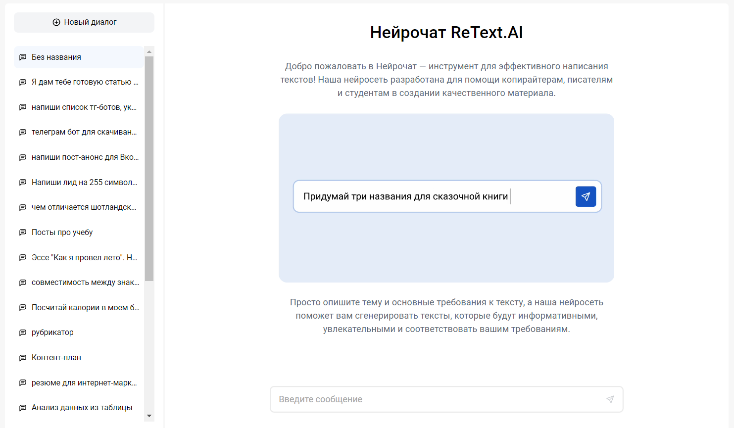Нейросеть, пишущая посты в ВК ReText.AI обеспечивает высокую уникальность текста, делая ваш контент привлекательным для аудитории. Такой сервис без труда сможет написать пост-знакомство ВКонтакте с примерами.