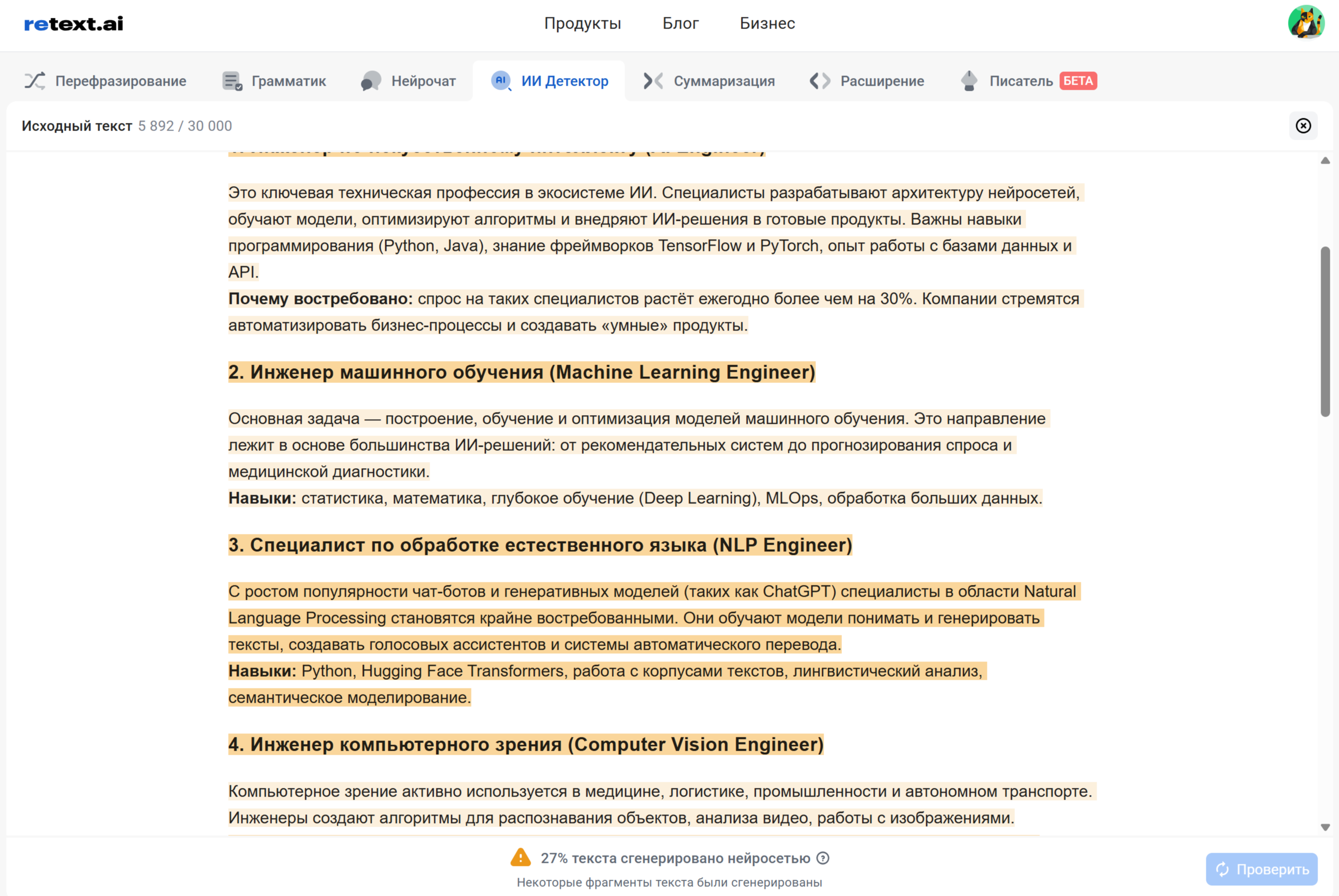 Попробуйте обновленный ИИ-детектор бесплатно на ReText.AI.
